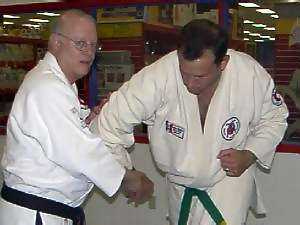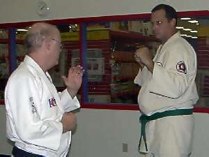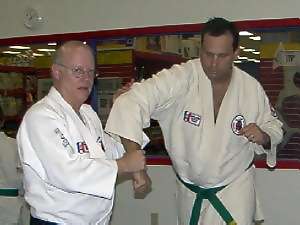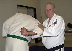 This armlock is ideal to use on a larger person or if you have small hands. It's an excellent alternative to the wrist press armlock & is now used by a number of major law-enforcement agencies. Once set you have a great deal of control over the person & it can be quite painful - so use caution! This technique is shown as a reaction to a right hit. It could be used for a variety of other techniques as well. Your initial response might have to be different, depending upon the attack or situation. It can be used from a desensitizing "come with me" hold [law-enforcement: low level of force] all the way to an overhead knife or club attack or high knife slash. Thanks to Marc Kolodziejczyk, for being my uke and Sensei Marc Tucker for the photography.
